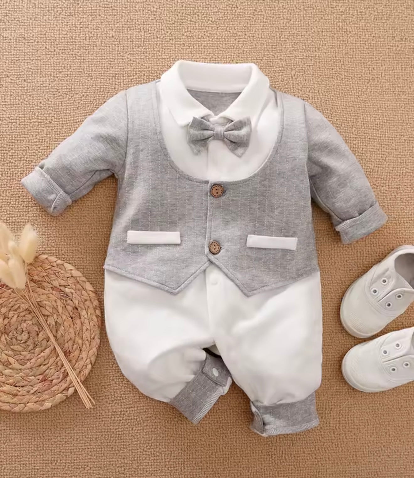 Mameluco en forma de traje, en algodón, con botones en entre piernas para un fácil cambio de pañal