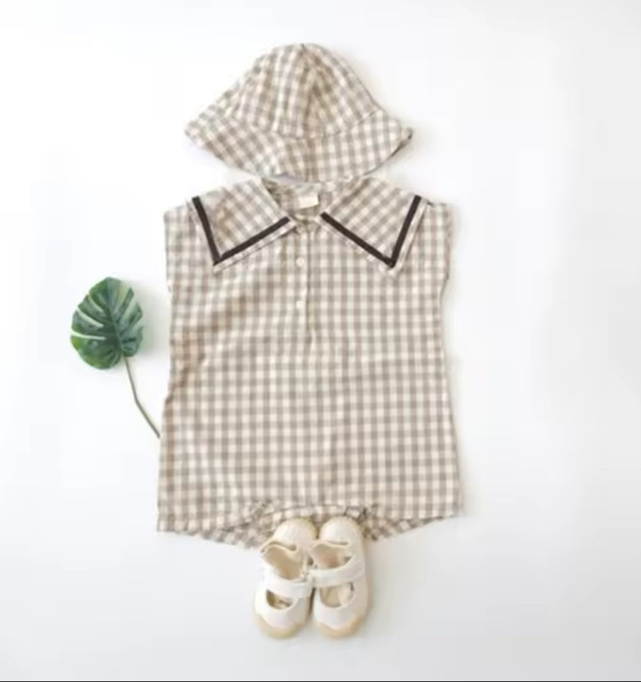 Pelelede muselina fresca con cuello marinero viene acompañado de un sombrero